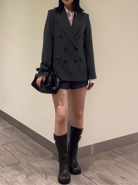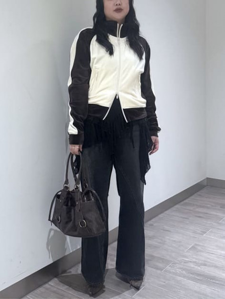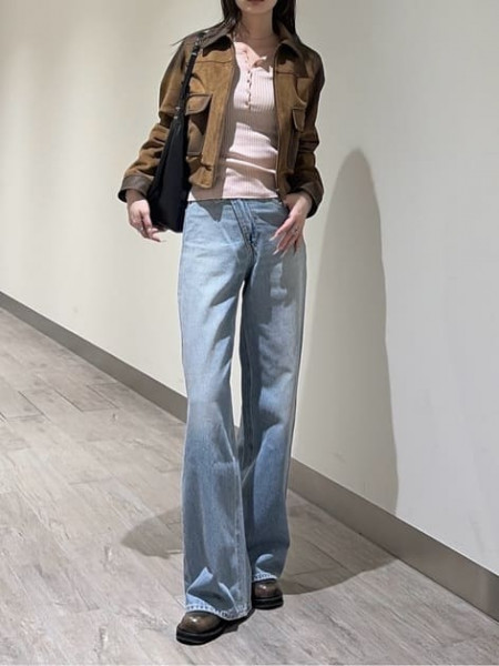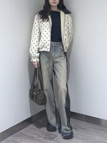 春にピッタリなデニムジャケット×ティアードスカートデニムジャケットの中は花柄のキャミトップスを合わ...