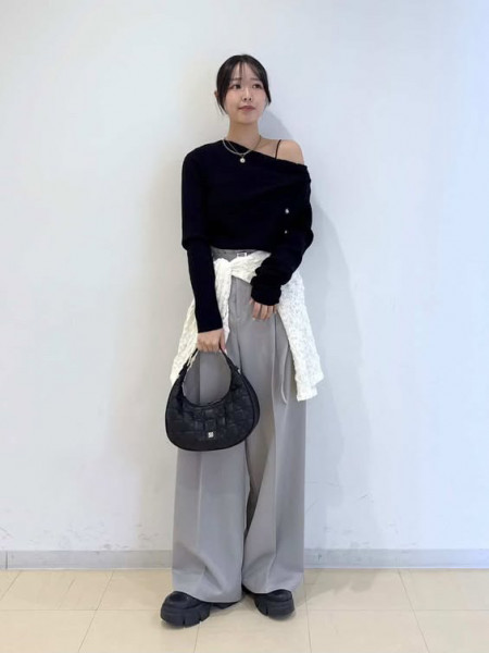 ボタンデザインニットカーディガンcol.IVY(完売中)/GRN/BLK ¥8,800※アイボリーの店頭在庫は完売してお...