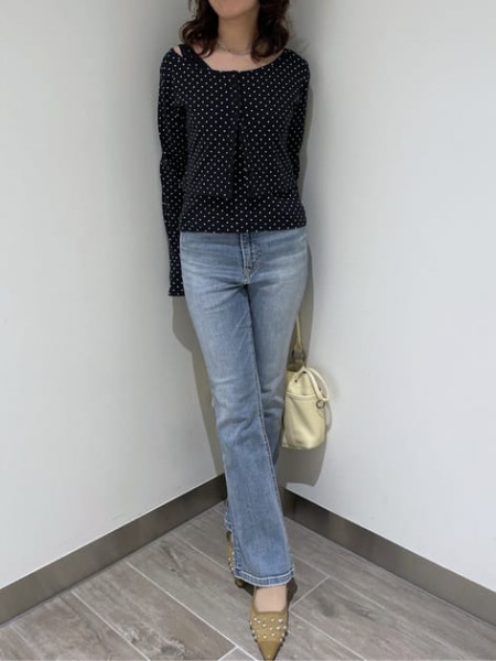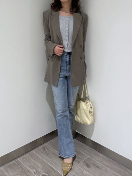 今年の春の新作デニムジャケット❤️色味と着丈のバランスが着回しやすく、どんなアイテムと合わせても抜...