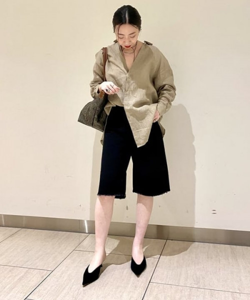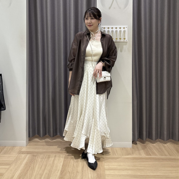 ブラウンのシアーシャツ×トレンドのドットスカートコーデ♡シアーシャツはサラッと着れて、夏の羽織もの...