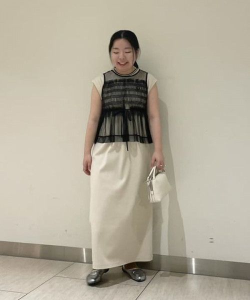 どんなコーデにも合わせやすいサテンナロースカートナロースカートのシルエットでスタイルアップ効果UP...