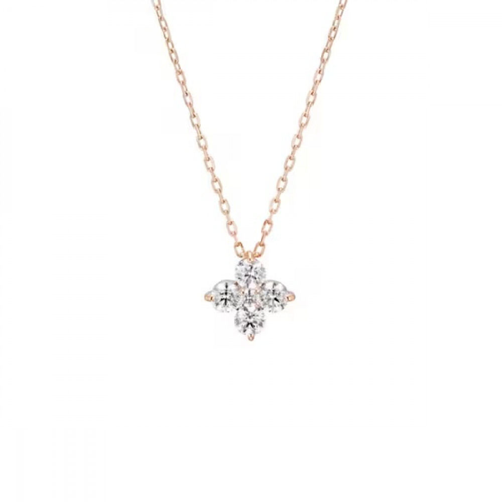 ピンクゴールドコーティングのフラワーモチーフが優しくキュートな印象のネックレス。女性らしく上品な...