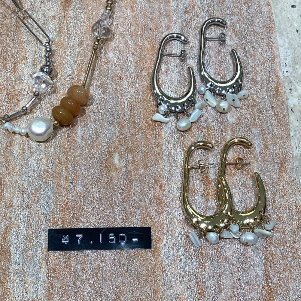 パールミックスコンビピアスcol.SLV/GLD ¥7,150耳に引っかけて付けるデザインが珍しく、揺れるパーツが...