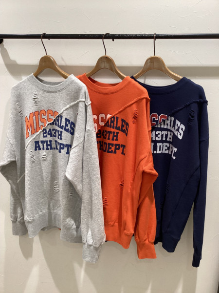 ダメージデザインルーズスウェットcol.L.GRY/ORG/NVY ¥9,900フロントは大胆にリメイク...