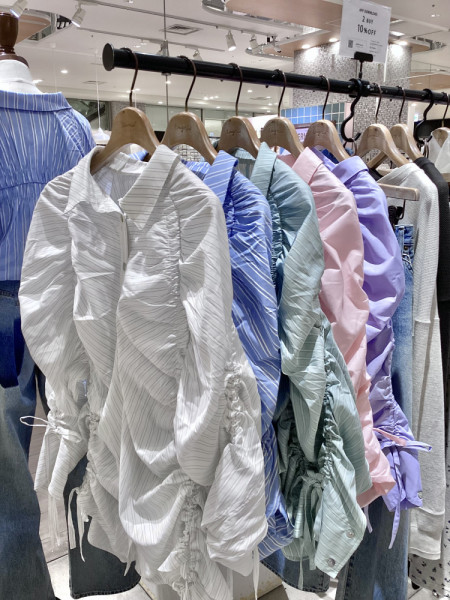 ギャザーデザインルーズシャツcol.O.WHT/BLU/MNT/PNK/PPL ¥11,000どのお色も可愛くて...