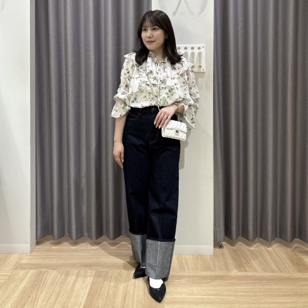 オリジナルのボタニカル柄が華やかなブラウスシフォン素材が涼しげで季節感◎デニムと合わせて甘すぎない...