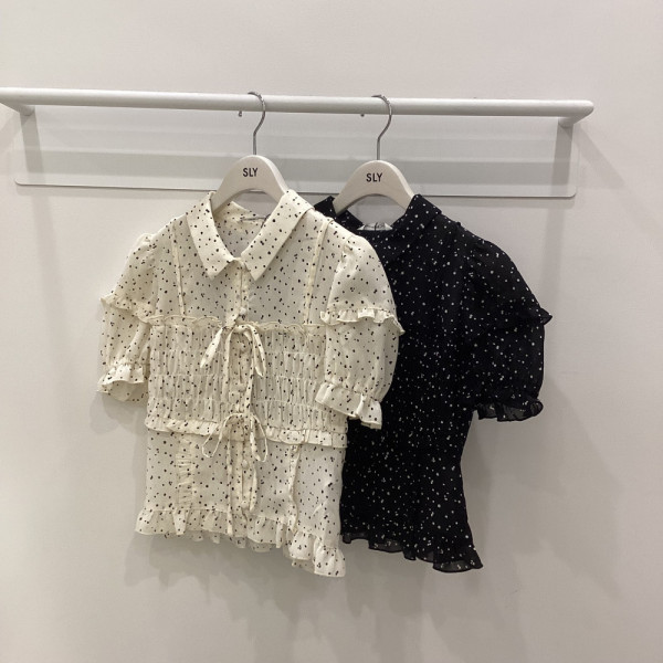 ドットがかわいいブラウスが入荷しました♩TINY DOTS FRILL BLM.WHT/ M.BLKFREE¥8,998