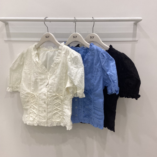 かわいいブラウス入荷しました!COTTON LACE LACE UP BLO.WHT/ L.BLU/BLKFREE¥8,998