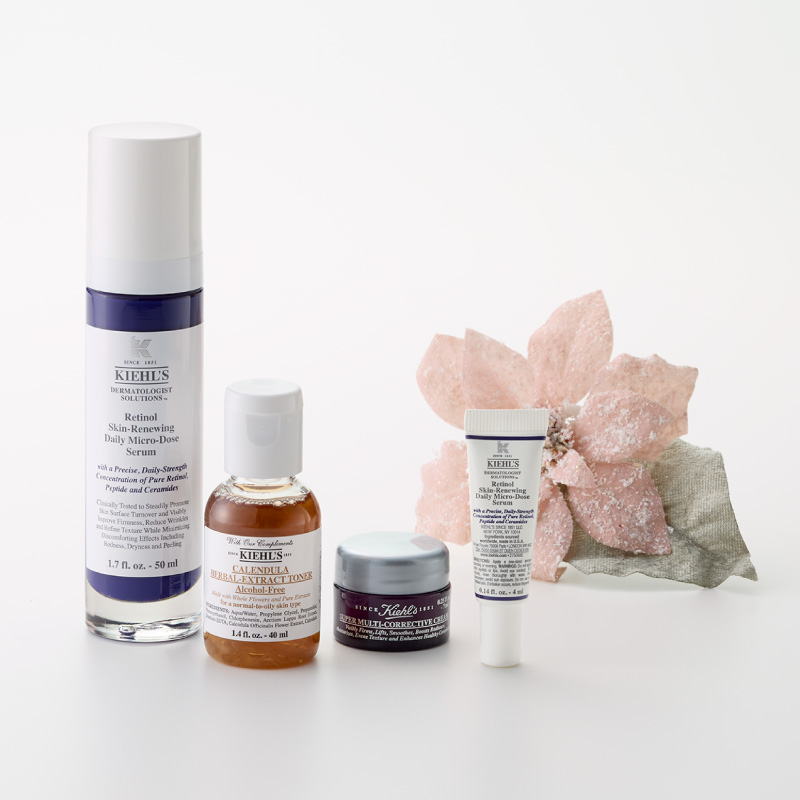 大人気のレチノール*美容液「DS RTN リニューイング セラム」がメインのコフレ。同梱の化粧水やクリームでトータルケアを。