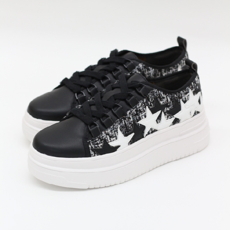 スターモチーフでツイード素材という、レディライクに履きこなせるスニーカー。歩きやすいプラットフォームタイプです。