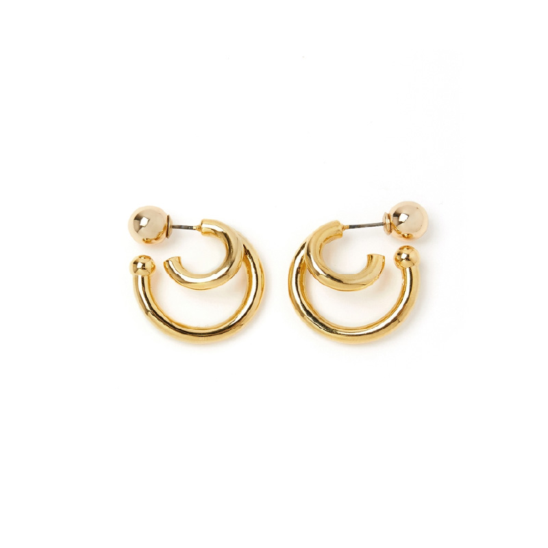 デザイン性がありながら、華奢なサイズで身につけやすいフープピアス。ボール型のキャッチでモードな印象もプラス。