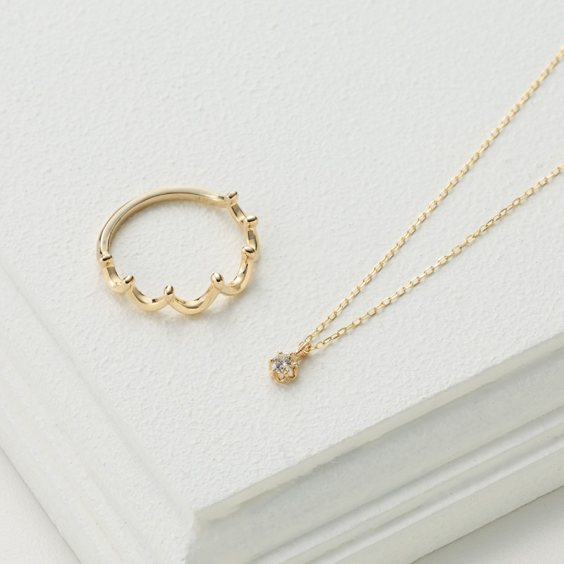 幸運の象徴とされるクラウンモチーフのピンキーリング。ひと粒ダイヤのネックレスと一緒に一年がんばった自分自身へのプレゼントにもおすすめです。