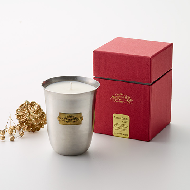 重厚感のある大理石製のベースで、オブジェにもふさわしい豪華なフレグランスキャンドル。特別な友達に贈りたい一品です。