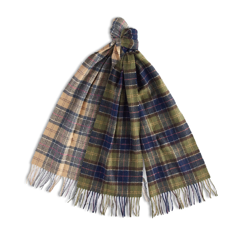 〈バブアー〉らしいタータンチェックの羊毛100%マフラー。全8色展開なので、彼に似合う色を選ぶのも楽しい!