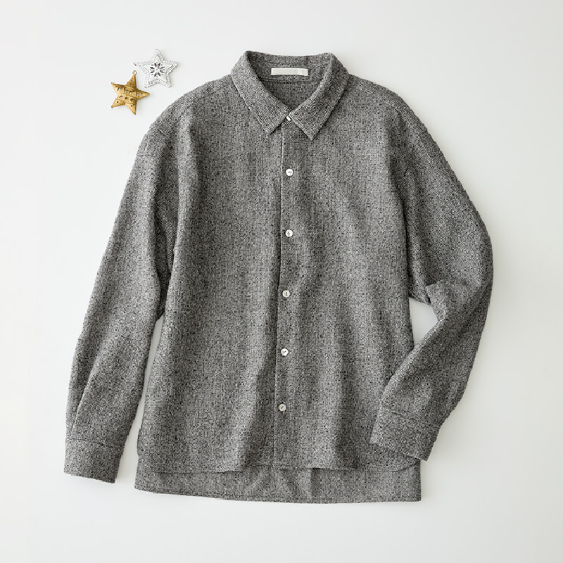 大人な彼に贈りたいシックなメンズシャツ。3色の糸で織られた、深みのあるウールのシャンブレー生地が特徴です。