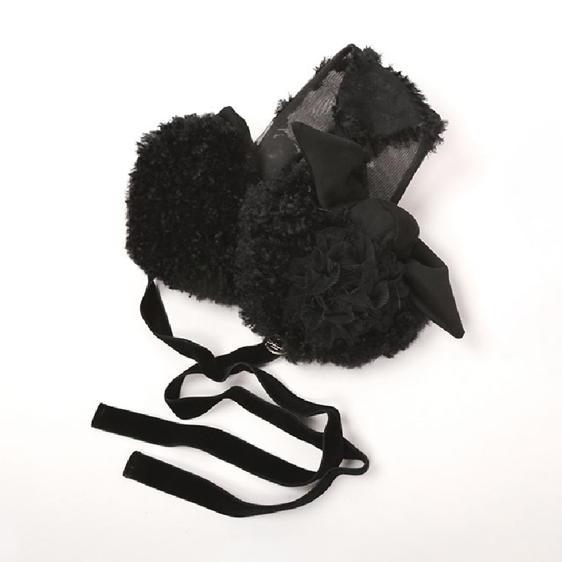 イヤーマフ、ヘアバンドとしてはもちろん、つけ襟風にもできる3way仕様。2つ手に入れてお揃いにしても楽しい。
