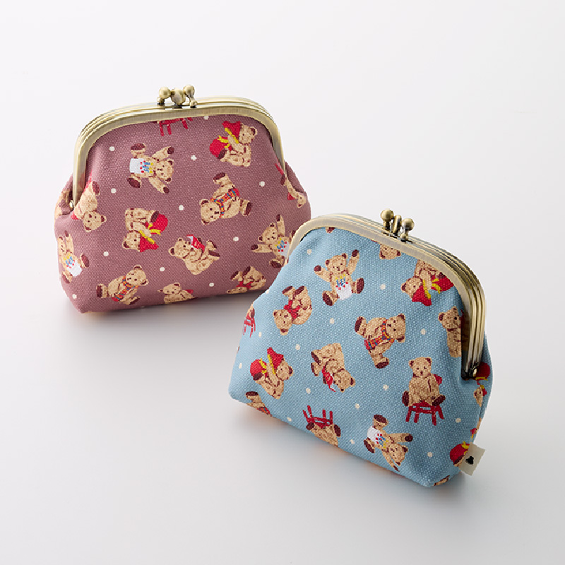 テディベア好きな友達にぜひあげたい、様々なベアのポーズがキュートながま口ポーチ。マチもあって使い勝手も◎。