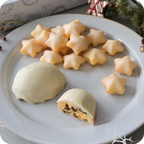 シェール)毎日おやつに食べたくなるクッキーを販売。クッキー缶などクリスマスだけの特別なお菓子がかわいい丸いケースに入ったクッキーセットをご用意しました。