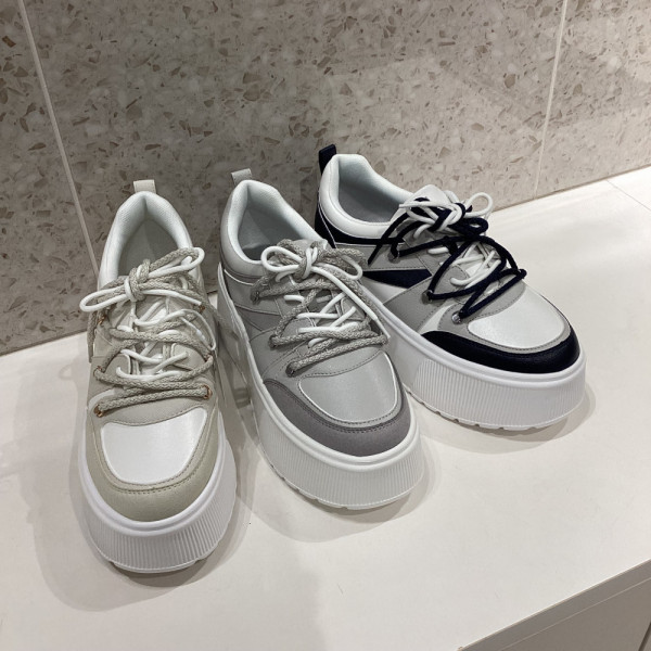 お問い合わせ番号:PH37080 J二重に結んだリボンがキャッチーなボリュームソールスニーカー。落ち着いた...