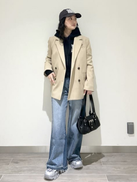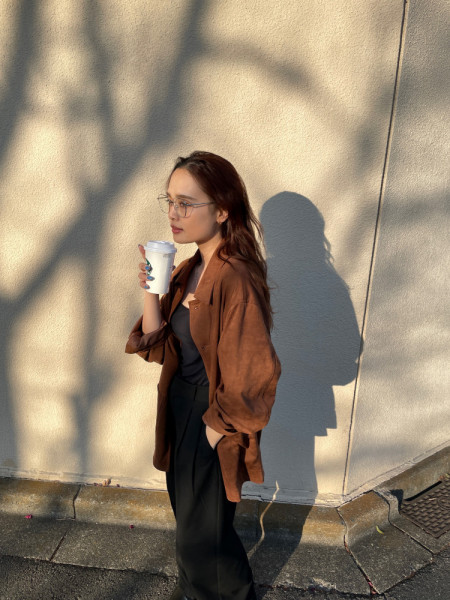 フェイクスウェードジャケットcol.IVY/YLW/BRN (着用) ¥19,800ヒップが隠れるぐらいの...