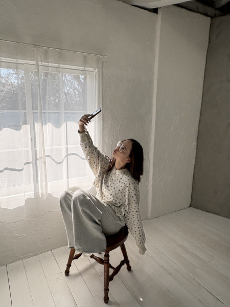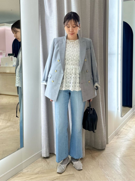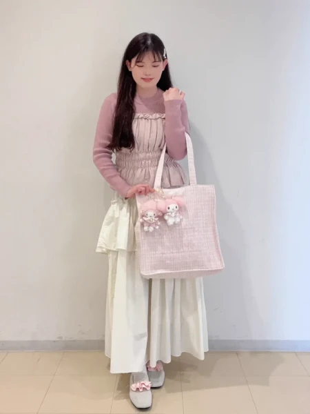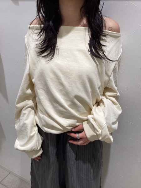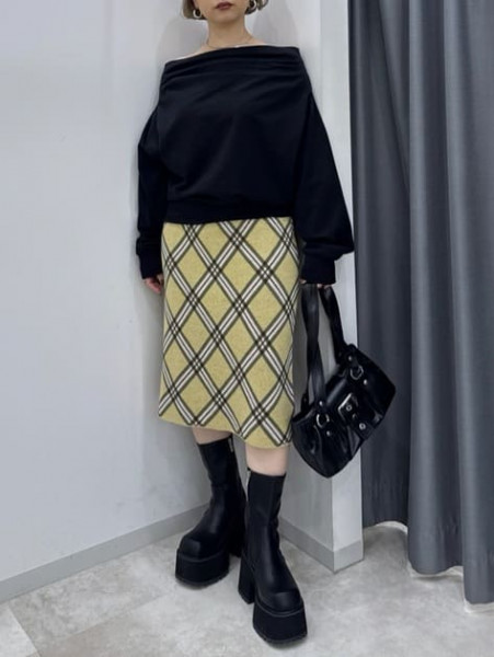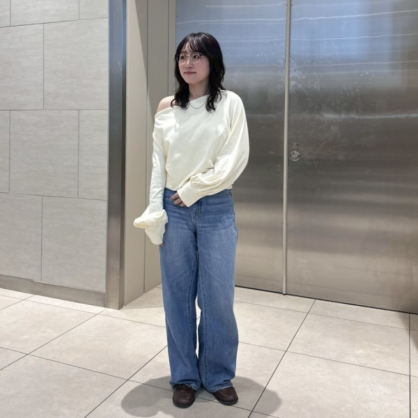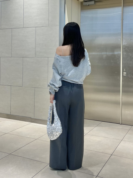 スラブルーズニットcol.O.WHT/GRN/C.GRY (着用) ¥11,000※PNKは完売しました。ハイウエストオーガ...