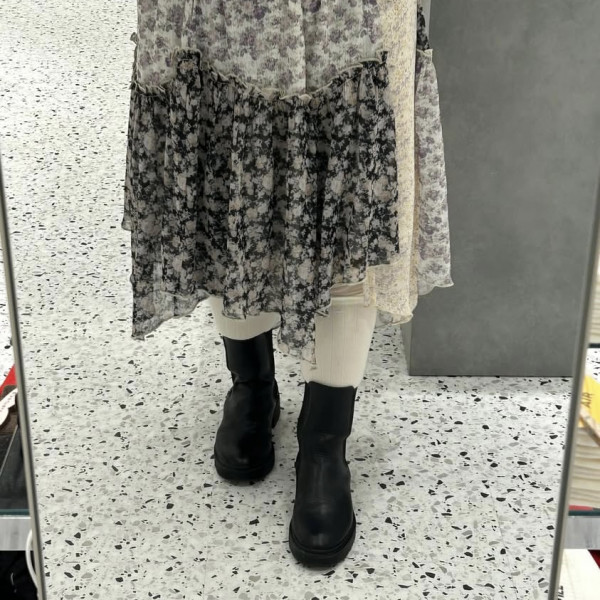 すっきりしたゴムくちで丁度いい長さ!下がってこないのでストレスなく履いていただけます✨今の時期はロ...